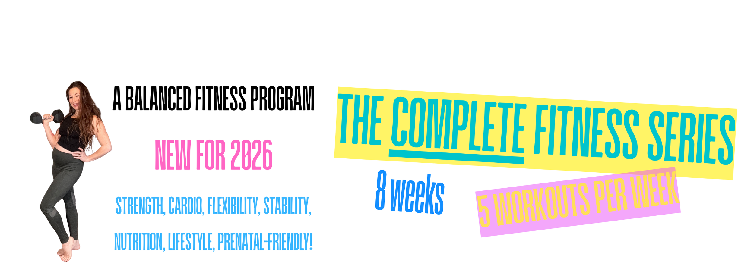 This is an 8-week series that includes FIVE classes per week that are about 30 minutes in length. You’ll enjoy progressive training for full-body strength, balance, core, joint stability, endurance cardio and sprint training PLUS loads of information on nutrition and lifestyle. Your instructor is currently in her second trimester of pregnancy :) so you’ll have lots of modification options that are offered for all levels of fitness and of course this means the series is also prenatal-friendly!